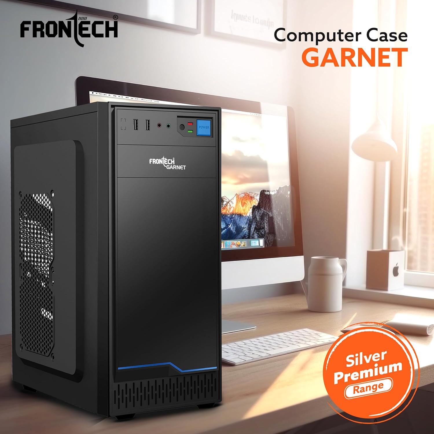 - FRONTECH Garnet Premium Silver Series Computer Cabinet with HD Audio | ATX/Mini ATX Compatible | Installed 1 x 80 mm Fan, 2 x USB 1.1 | Ideal for Home/Office/Gaming (FT 4323B, Blue