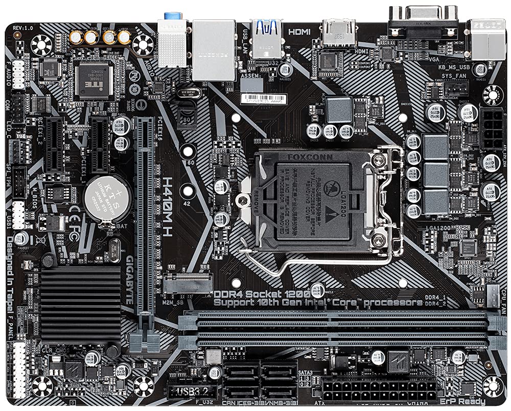 H410M H motherboard comes with Exclusive Realtek 8118 Gaming LAN.NVMe PCIe Gen3 x2 2280 M.2 Connector.GIGABYTE motherboards use high-end audio capacitors. These capacitors help deliver high resolution and high fidelity audio to provide the most realistic sound effects for gamers.