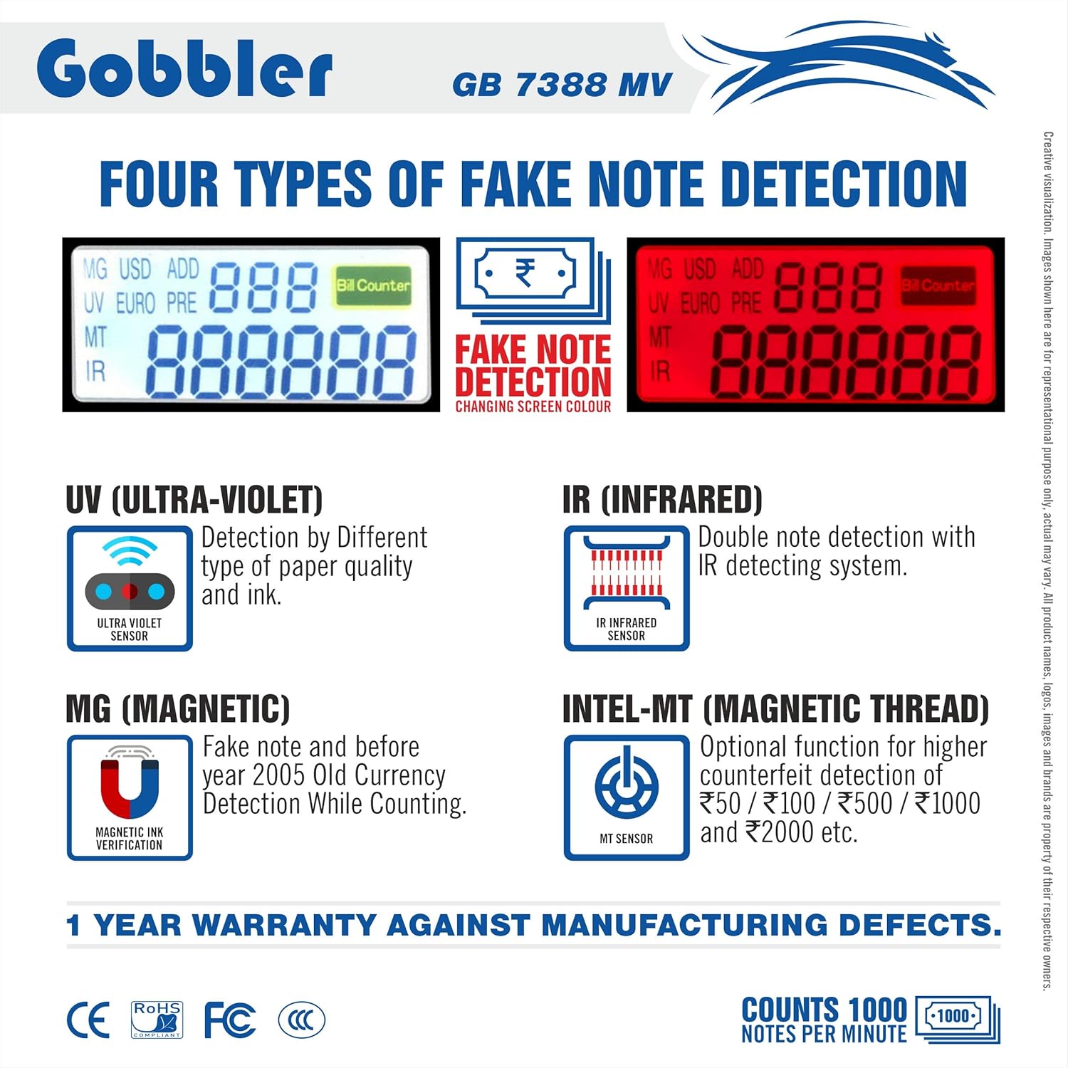 - Advanced Counterfeit Detection with UV / MG / IR / MT which makes it impossible to miss any fake notes
